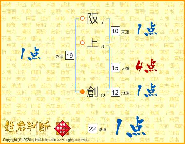 阪(7画)上(3画) 創(12画)