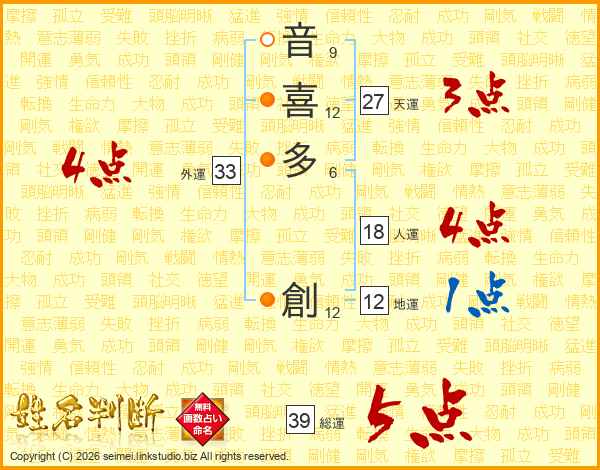 音喜多創さんの総運は39画の5点!