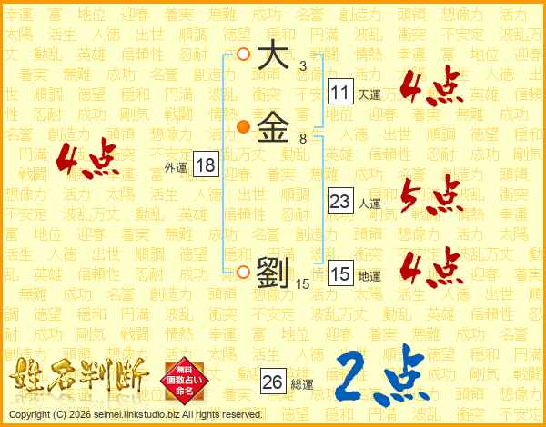 大金劉さんの総運は26画の2点!