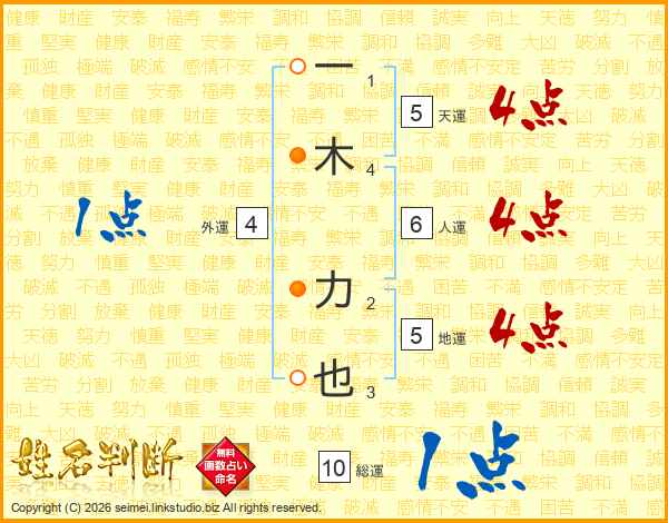 一木力也さんの総運は10画の1点!
