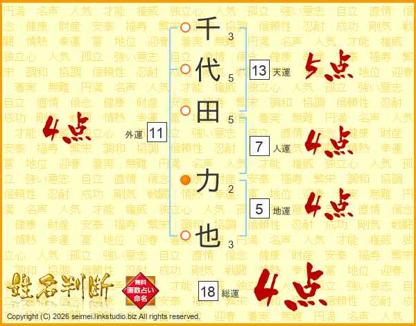 千代田力也さんの総運は18画の4点!