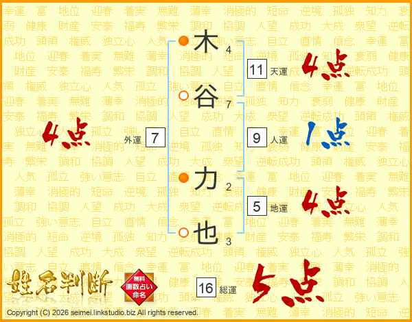 木谷力也さんの総運は16画の5点!