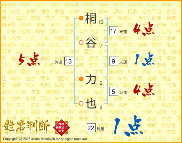 桐谷力也さんの総運は22画の1点!