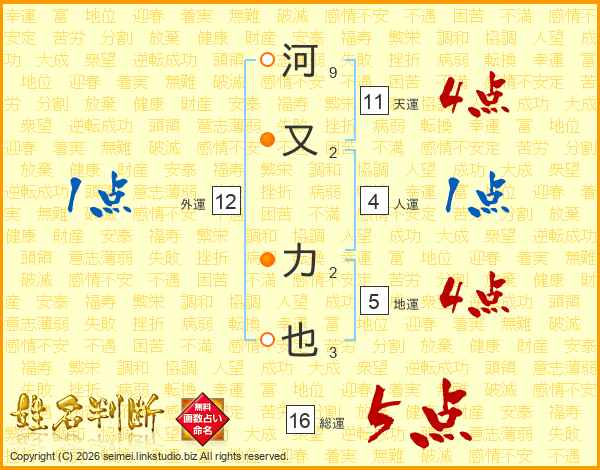 河又力也さんの総運は16画の5点!