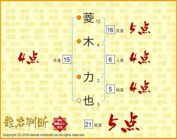 菱木力也さんの総運は21画の5点!