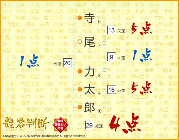 寺尾力太郎さんの総運は29画の4点!