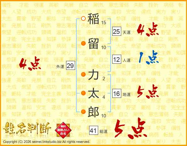稲留力太郎さんの総運は41画の5点!
