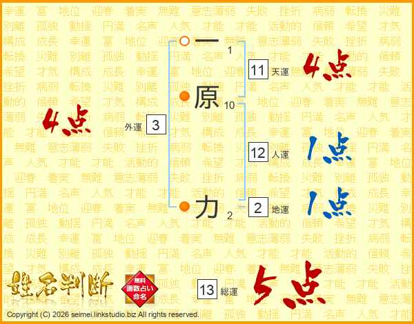 一原力さんの総運は13画の5点!