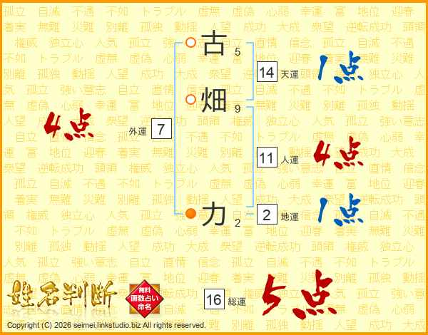 古畑力さんの天運は14画の1点!