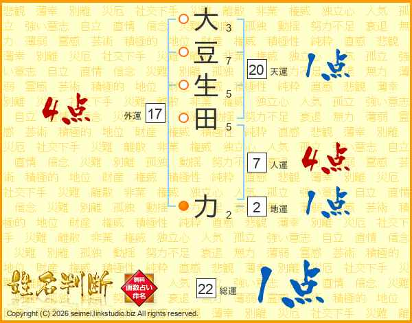 大豆生田力さんの総運は22画の1点!