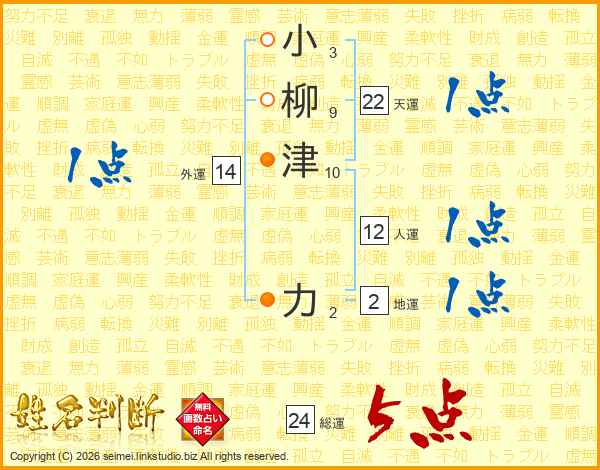 小柳津力さんの総運は24画の5点!