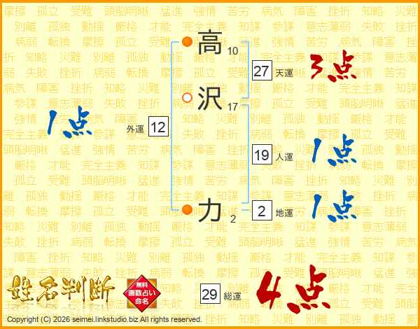 高沢力さんの総運は29画の4点!