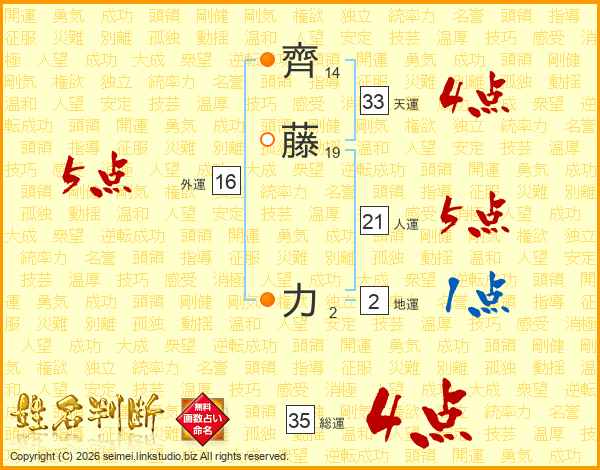 齊藤力さんの人運は21画の5点!