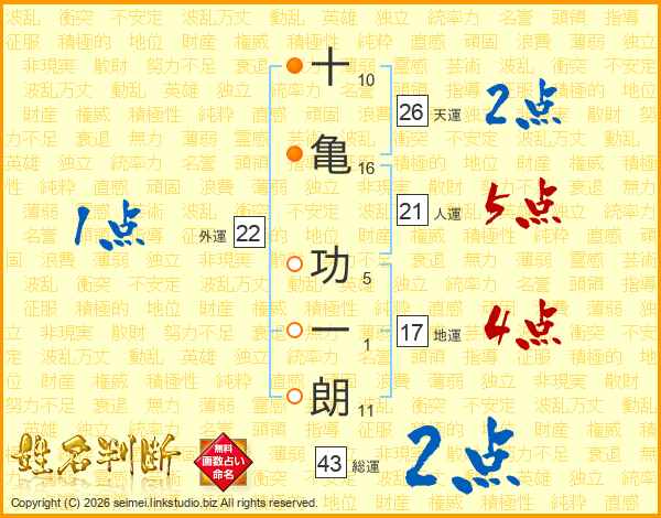 十亀功一朗さんの天運は26画の2点!
