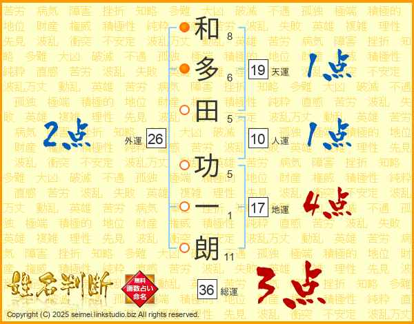 和多田功一朗さんの天運は19画の1点!