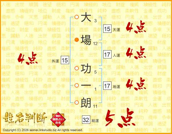 大場功一朗さんの人運は17画の4点!