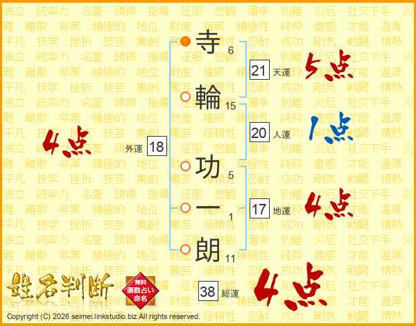 寺輪功一朗さんの総運は38画の4点!