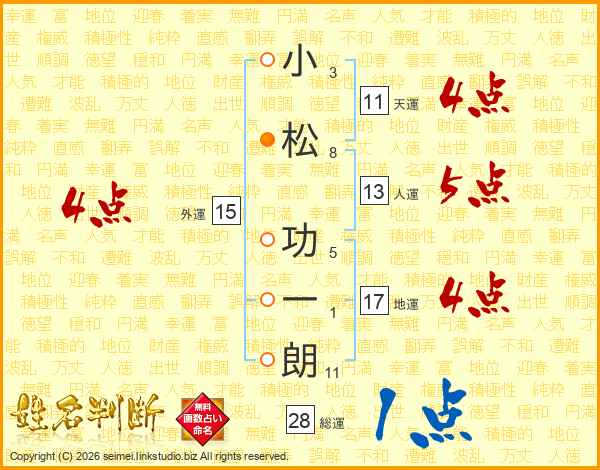 小(3画)松(8画) 功(5画)一(1画)朗(11画)
