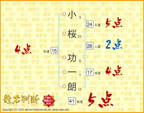 小桜功一朗さんの総運は41画の5点!