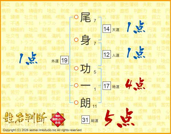 尾身功一朗さんの総運は31画の5点!