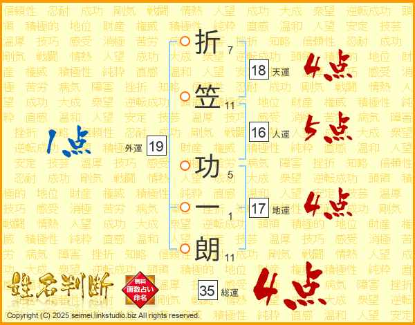 折笠功一朗さんの総運は35画の4点!
