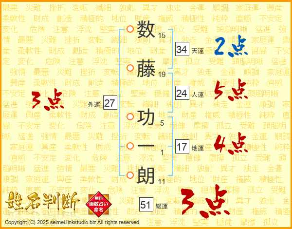 数藤功一朗さんの天運は34画の2点!