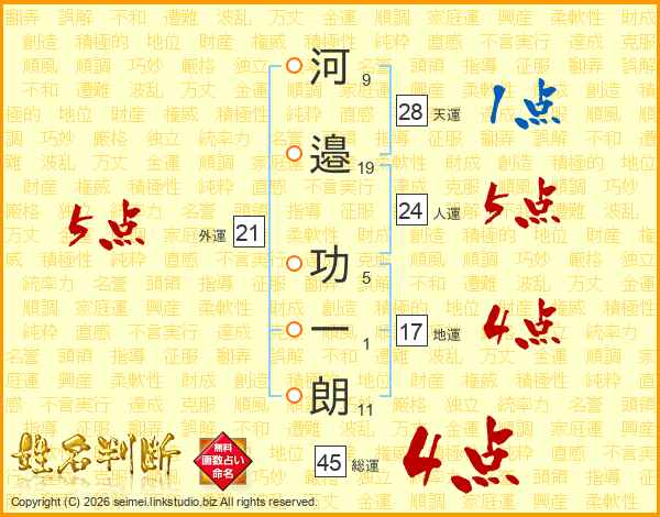 河邉功一朗さんの総運は45画の4点!