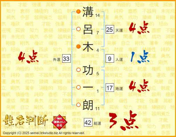 溝(14画)呂(7画)木(4画) 功(5画)一(1画)朗(11画)
