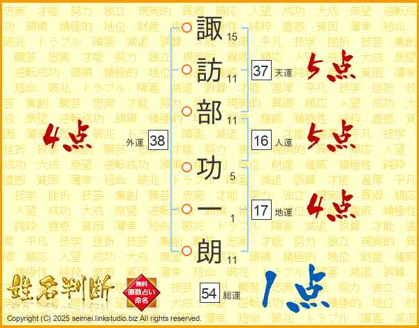 諏訪部功一朗さんの天運は37画の5点!