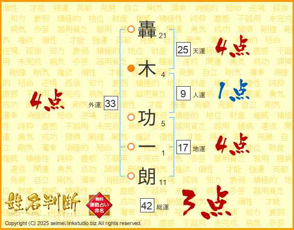 轟木功一朗さんの天運は25画の4点!