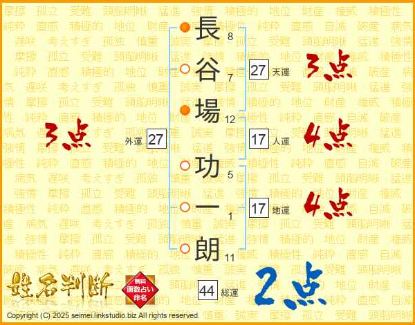 長谷場功一朗さんの天運は27画の3点!