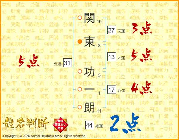 関東功一朗さんの人運は13画の5点!
