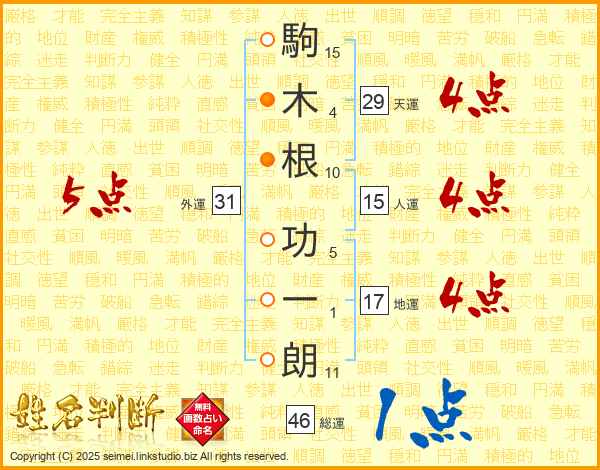 駒木根功一朗さんの天運は29画の4点!