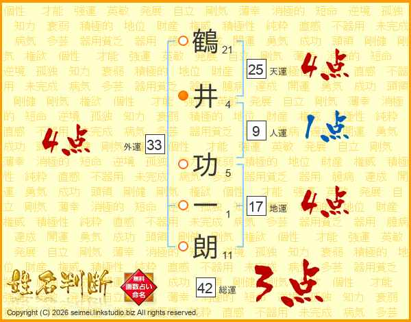 鶴井功一朗さんの天運は25画の4点!