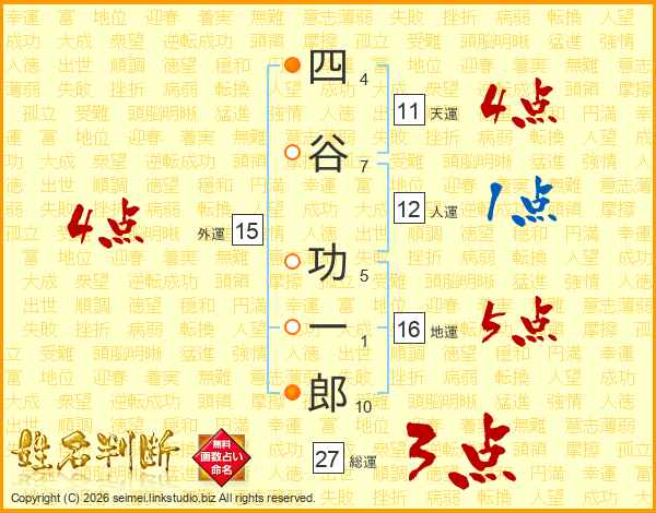 四谷功一郎さんの天運は11画の4点!