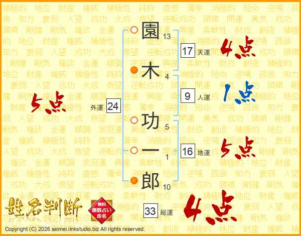 園木功一郎さんの総運は33画の4点!