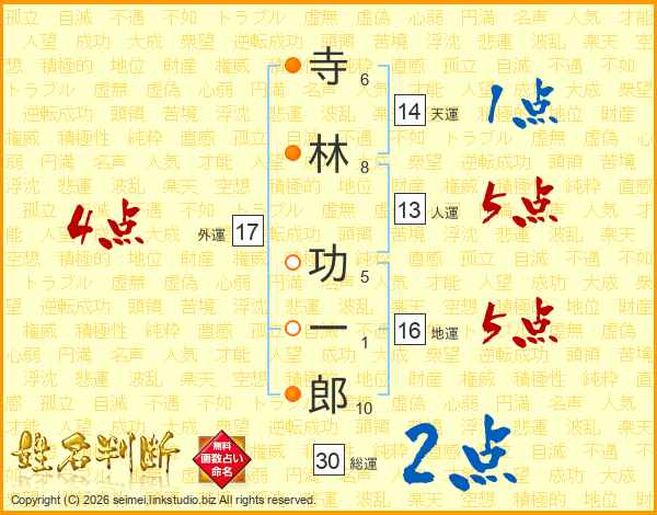 寺林功一郎さんの人運は13画の5点!