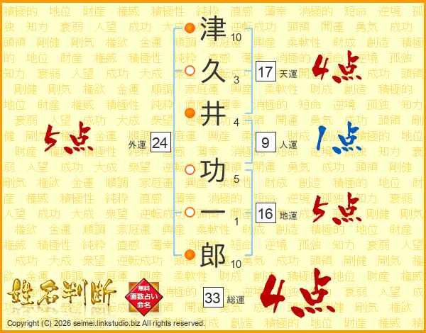 津久井功一郎さんの総運は33画の4点!