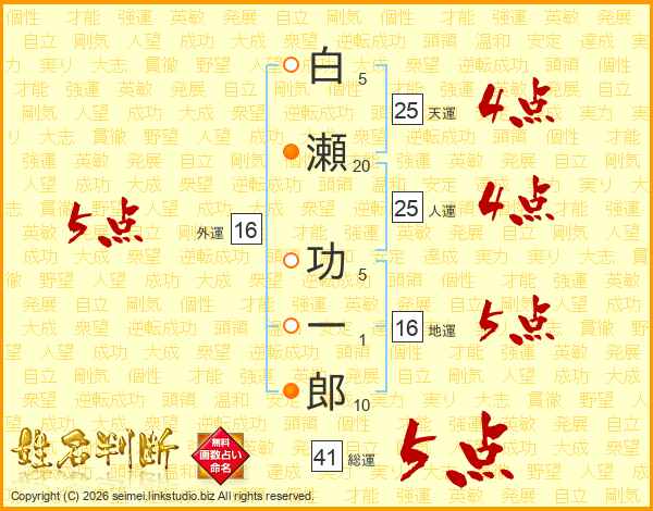 白(5画)瀬(20画) 功(5画)一(1画)郎(10画)