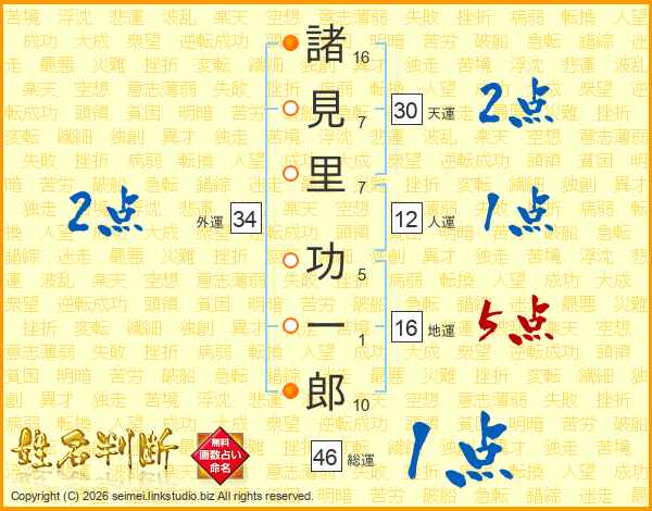 諸見里功一郎さんの総運は46画の1点!