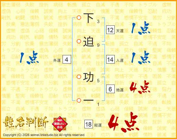 下迫功一さんの総運は18画の4点!