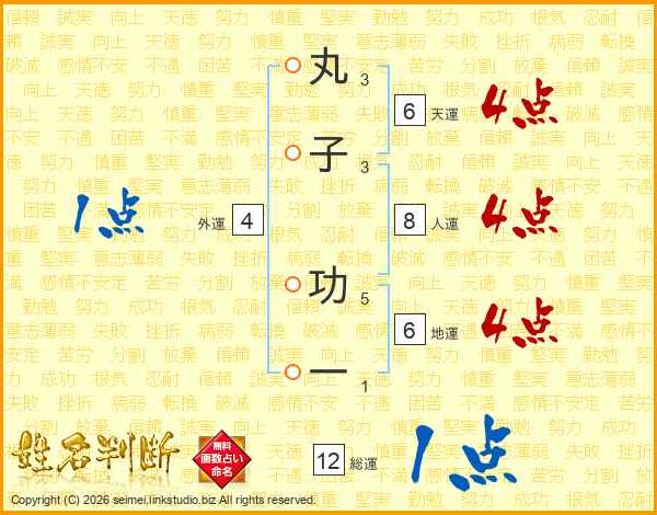 丸子功一さんの総運は12画の1点!