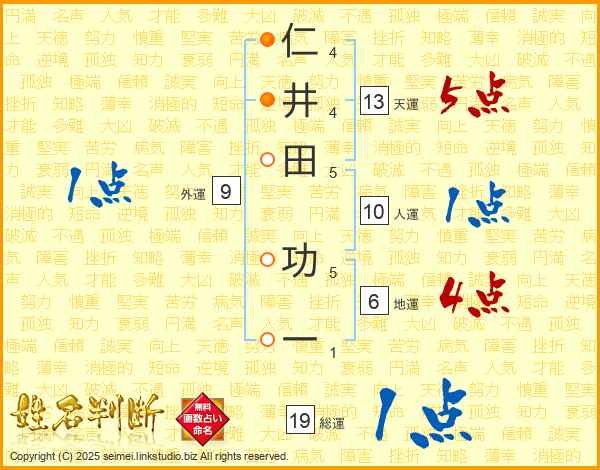 仁井田功一さんの天運は13画の5点!