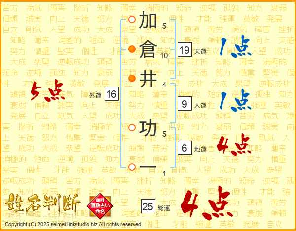 加倉井功一さんの天運は19画の1点!