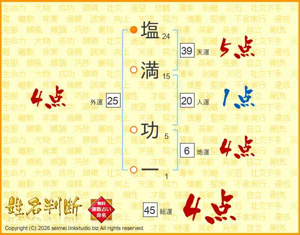 塩満功一さんの総運は45画の4点!
