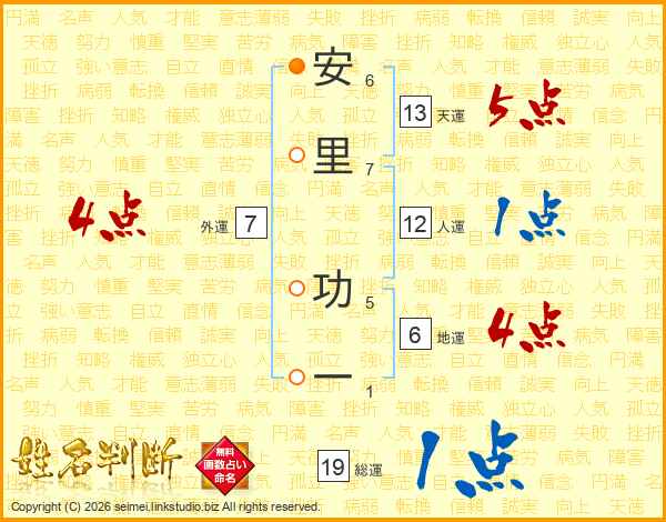 安里功一さんの天運は13画の5点!