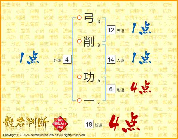 弓削功一さんの総運は18画の4点!