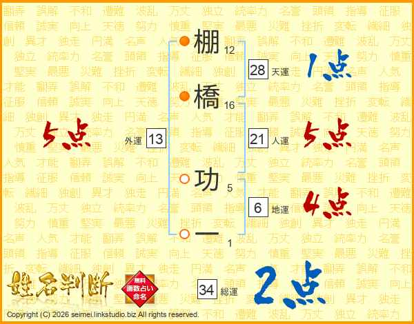 棚橋功一さんの総運は34画の2点!