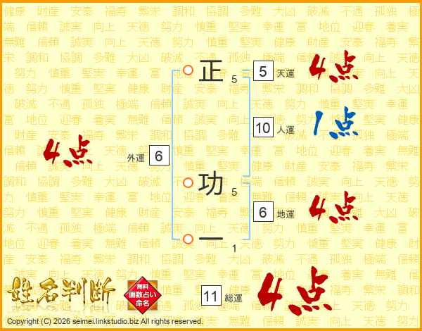 正功一さんの総運は11画の4点!
