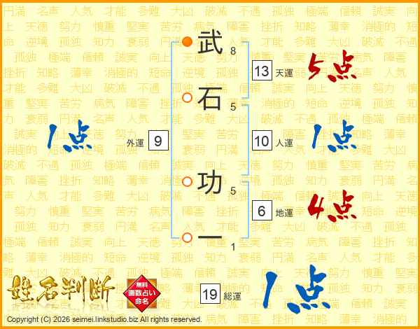 武石功一さんの天運は13画の5点!